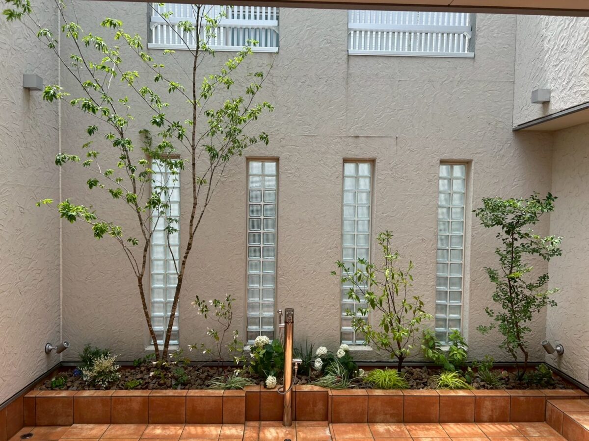 中庭の植栽が殺風景という事でやりかえ工事のご依頼をいただきました。
